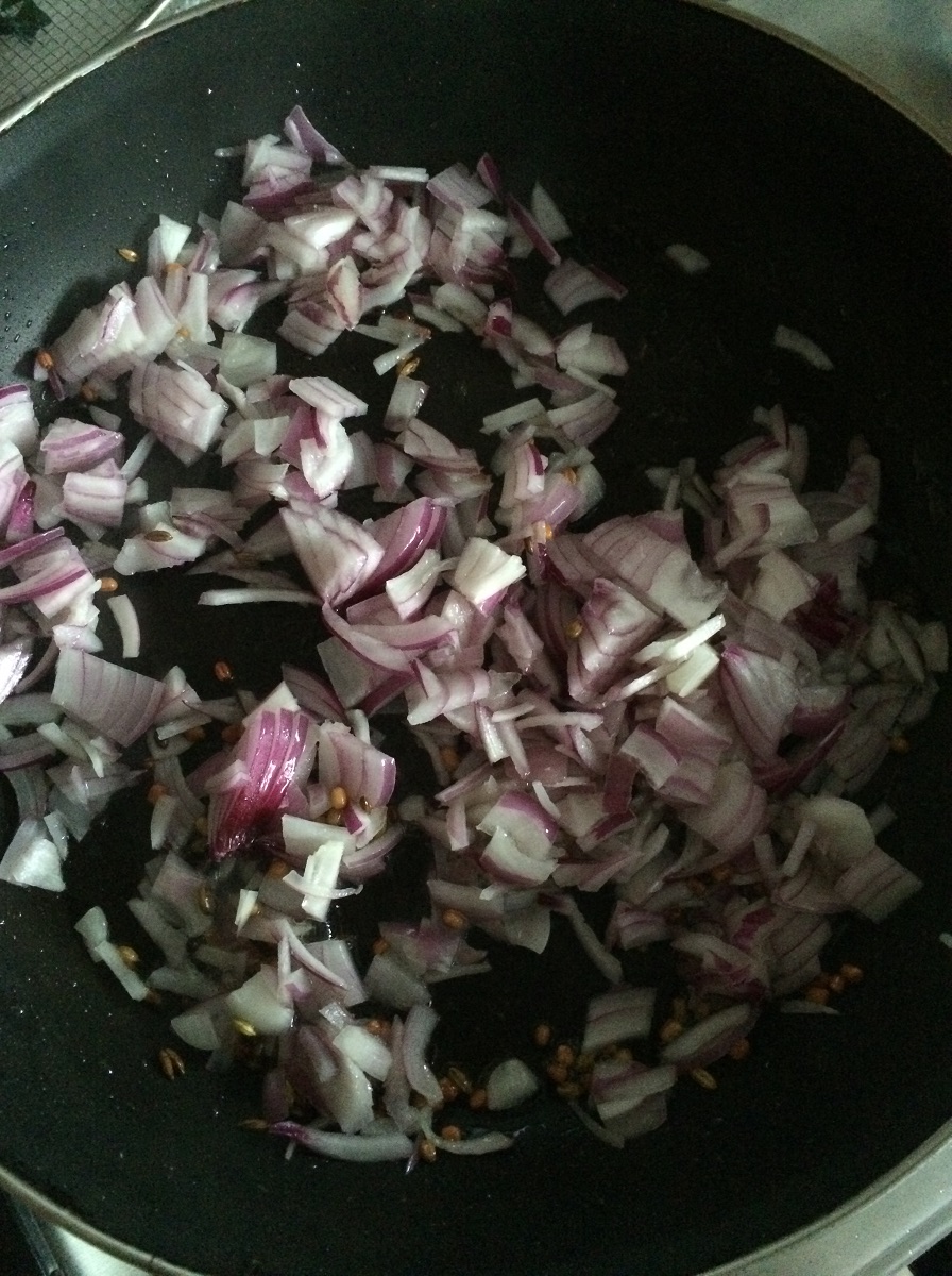 - Heat oil in a pan and temper fennel, urad dal & curry leaves.