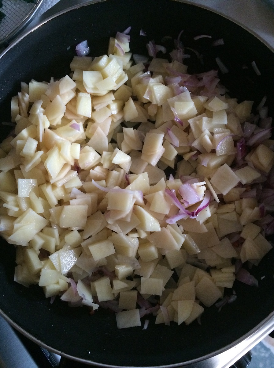 - After both carrot and potato gets cooked add salt and sambar powder.