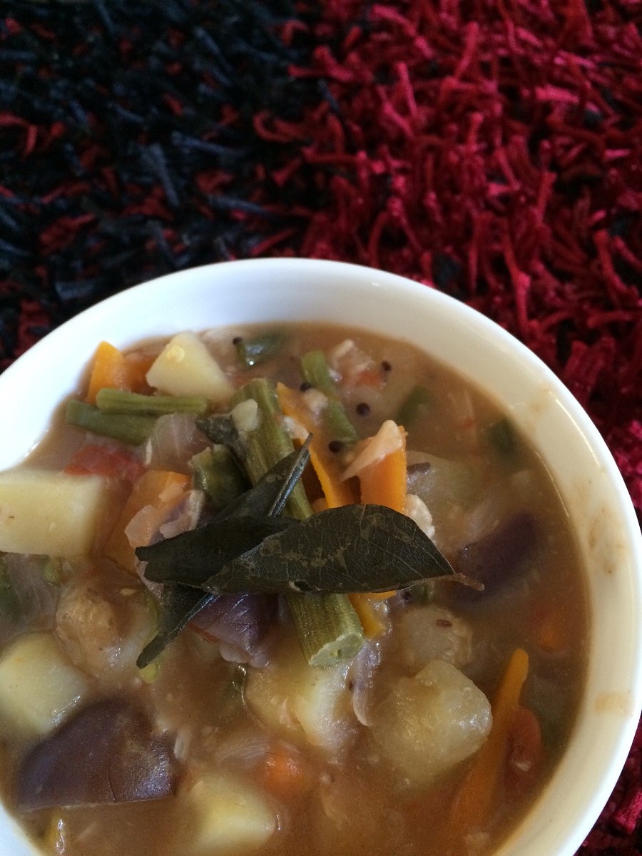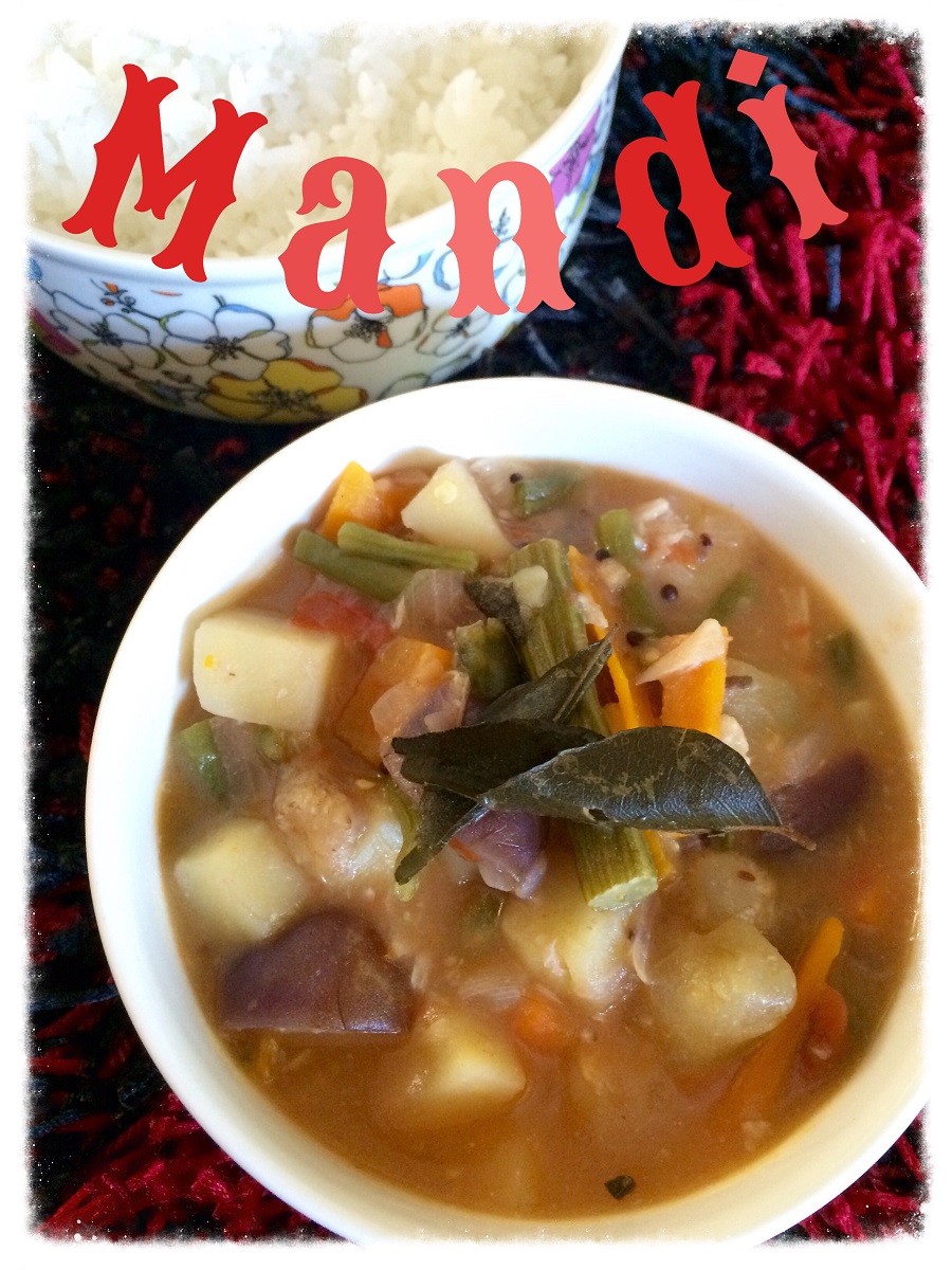 OK. Finally I am posting a chettinad recipe which has its roots from my childhood. Being born in a chettinad family I am in love with all the recipes prepared in the kitchen. The name chettinad brings water to anyone’s mouth. Its a very popular cuisine. Generally kuli paniyaram, chettinad curries are popular, but other than that there are lot of authentic recipes which is not that popular but it is very interesting and not that difficult to prepare. One such preparation is MANDI, it is called by that name as it uses the rice washed water that is “arusi kelanja mandi”. That gives a great taste to this dish. It is a dish which can be taken for a trip or when u r travelling, as it doesn’t get bad as there is no dal but only lot of tamarind in it. This is a single side dish that is had with rice as it has all the vegetables in it.
