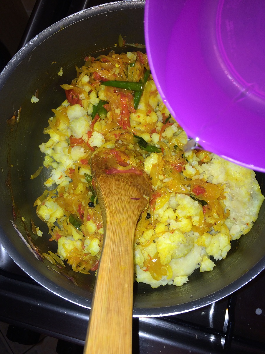 Don’t add too much turmeric. The potato needs to be light yellow and not bright yellow.
