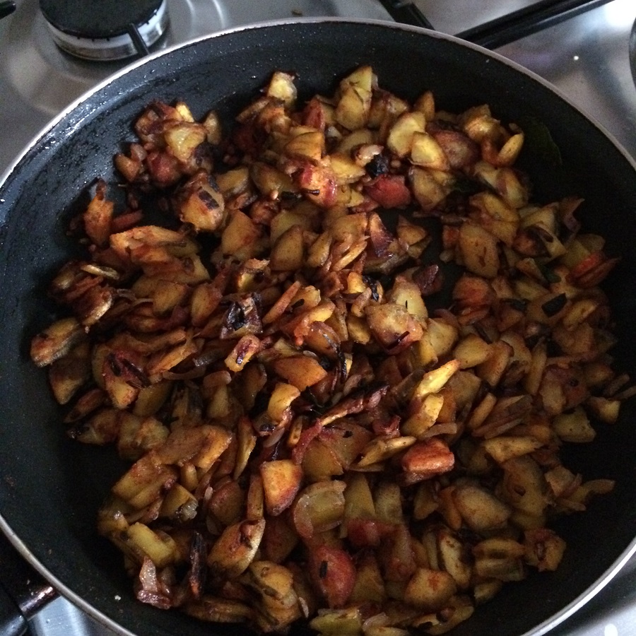 Adding a bit more oil than required for any other masala and allowing it to cook in the oil makes it more delicious. Health conscious people can reduce it, instead sprinkle water at the end and cook.