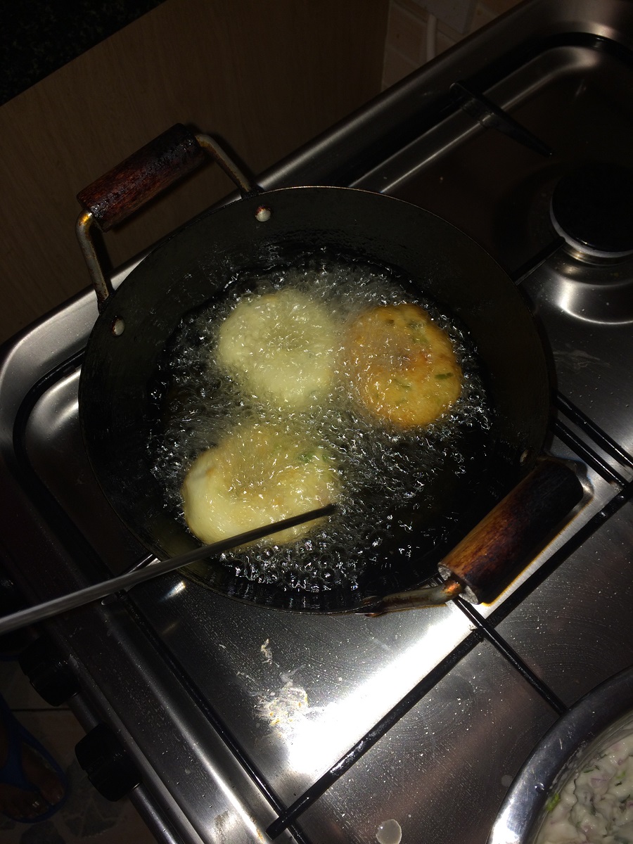 - Drop three or four vada’s one after the other and flip over them to cook evenly.
