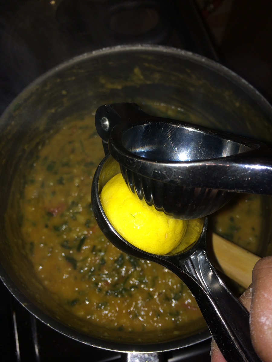 - Add coriander leaves and switch off the stove. Now add the juice of half the lime.