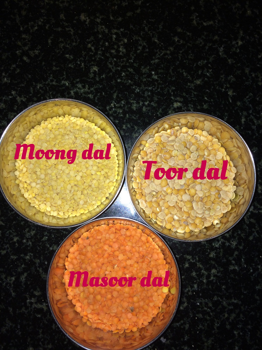 - Take three dal’s together in a pressure cooker and cook them until they are mushy.