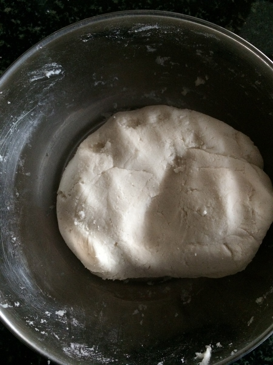 • Add salt to water and check if it is slightly salty. Add this water to the flour and make it a smooth dough.