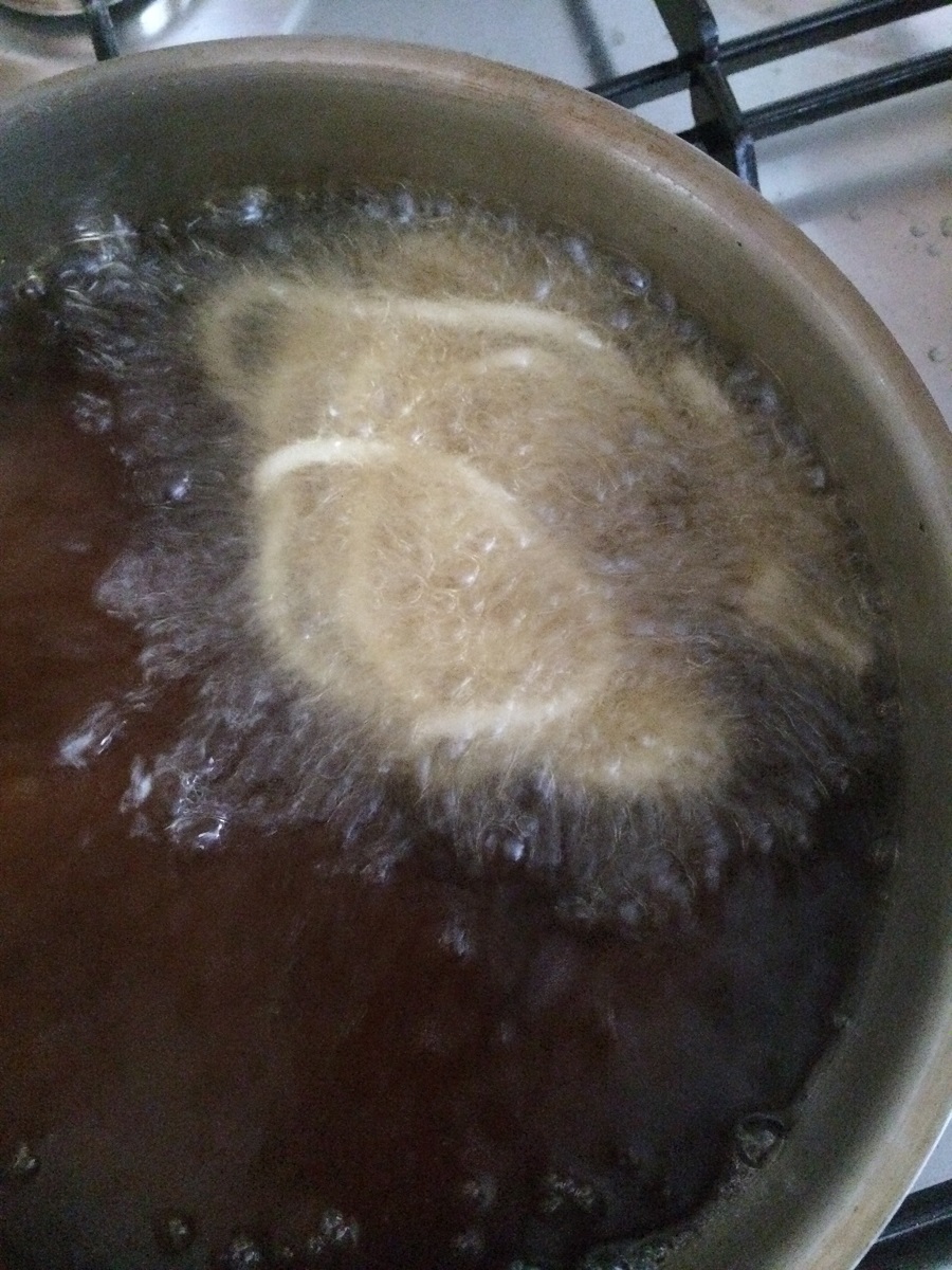 • After the thenkuzhal gets a bit firm flip it over. Remove it when all the bubbles subside.