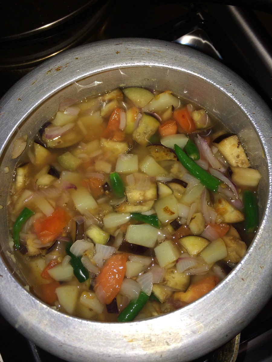 - Fill it with water until the vegetables get covered.