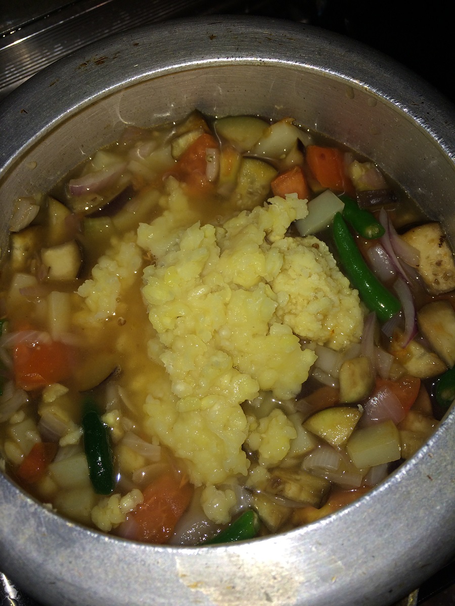 - Add required amount of moong dal to the gravy. Check the taste and adjust accordingly.
