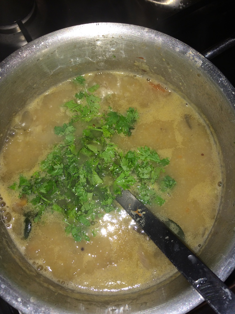 This gravy is not very thick like sambar it is a bit runny in consistency. If you prefer a bit thicker version like me add little more of the moong dal.
