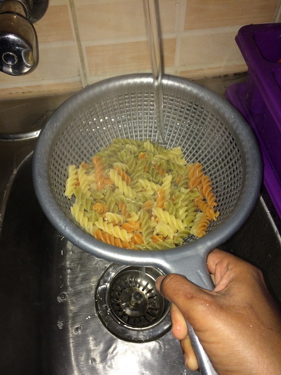 - Now strain it in a colander and run cold water.