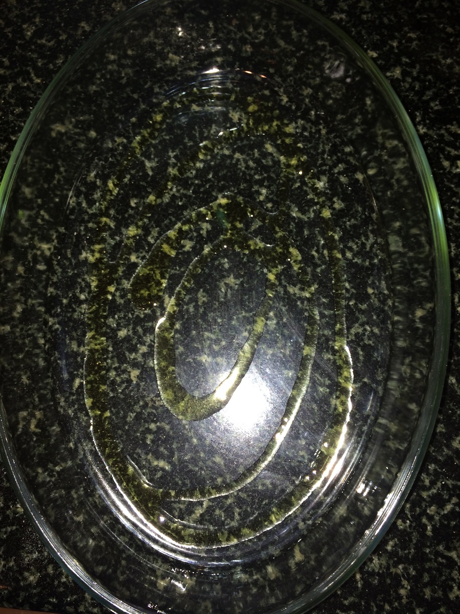 - Take a baking dish and grease it with a tablespoon of olive oil and set aside.