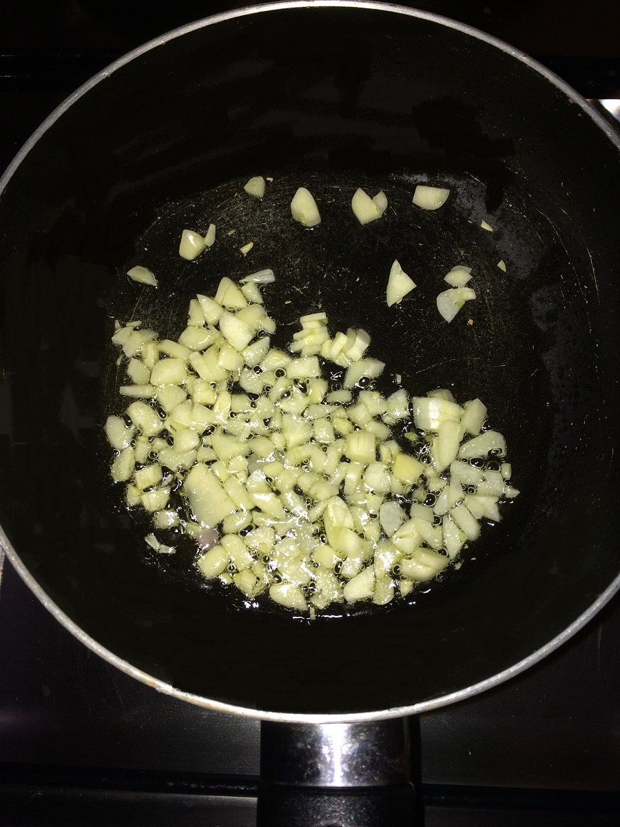 - Chop the garlic and onion.