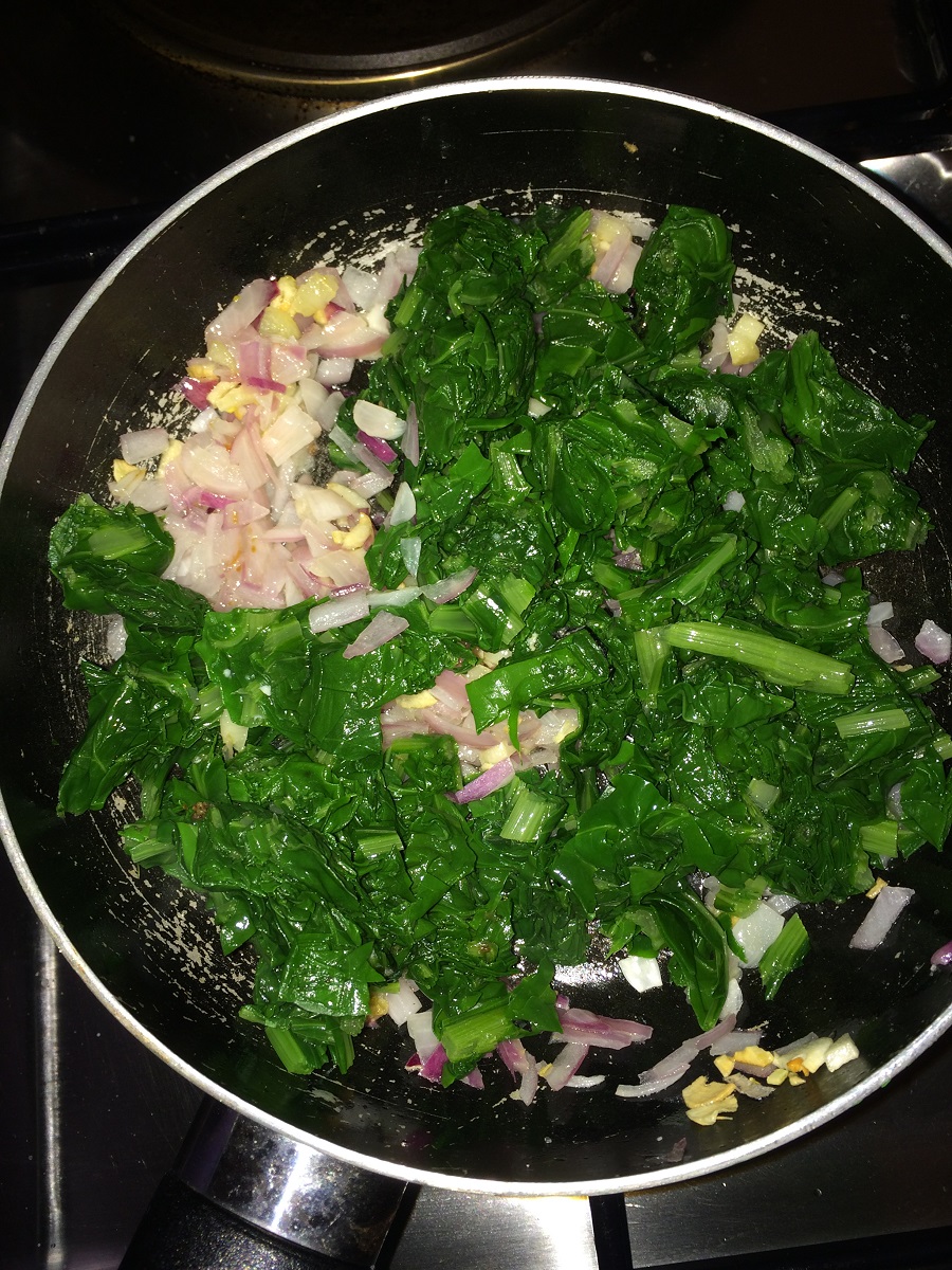 - After it gets cooled rough chop the spinach and set aside.