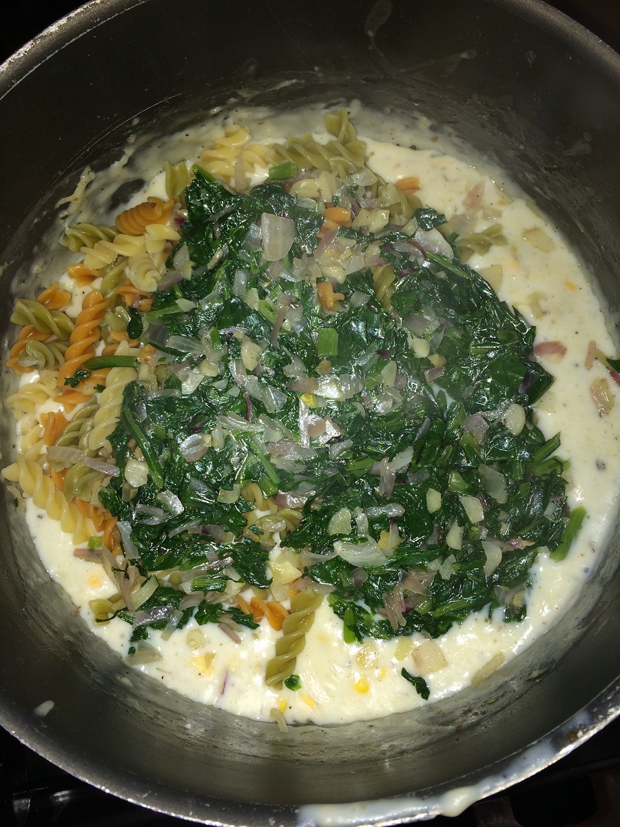 This is a super creamy dish as we add the white sauce to the corn, spinach and the pasta.