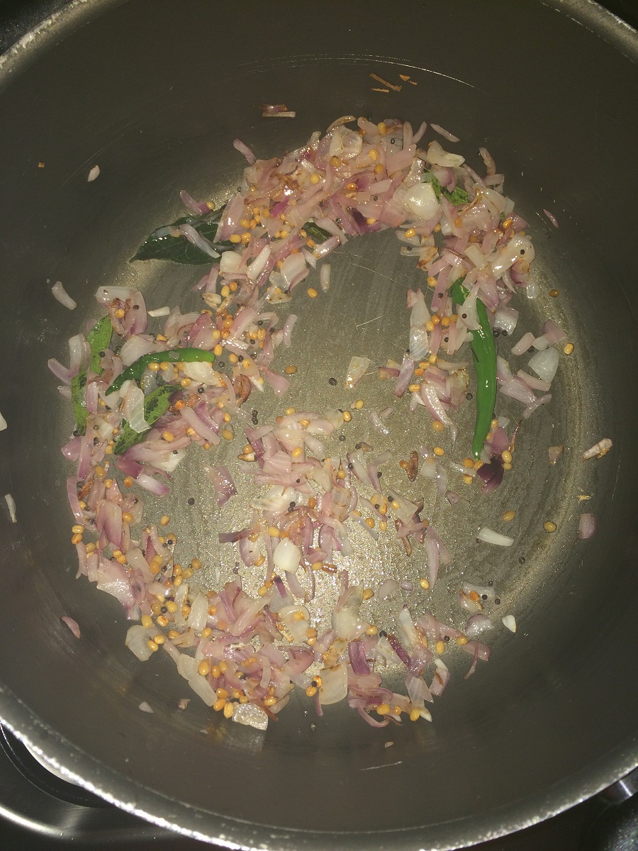 - Take little oil in a vessel and temper mustard, urad dal and curry leaves.