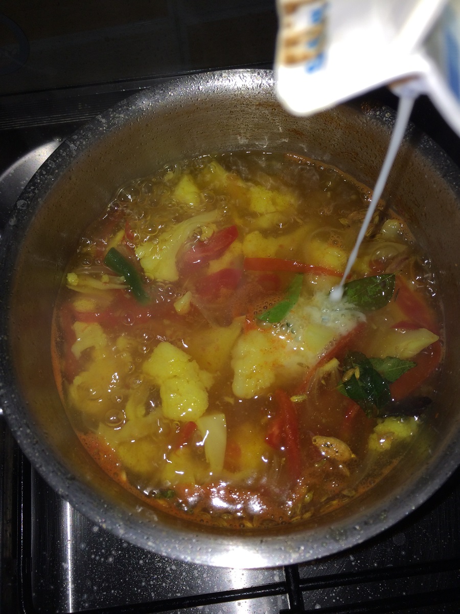 - Now add the milk and after it comes to a boil add the chopped coriander leaves.