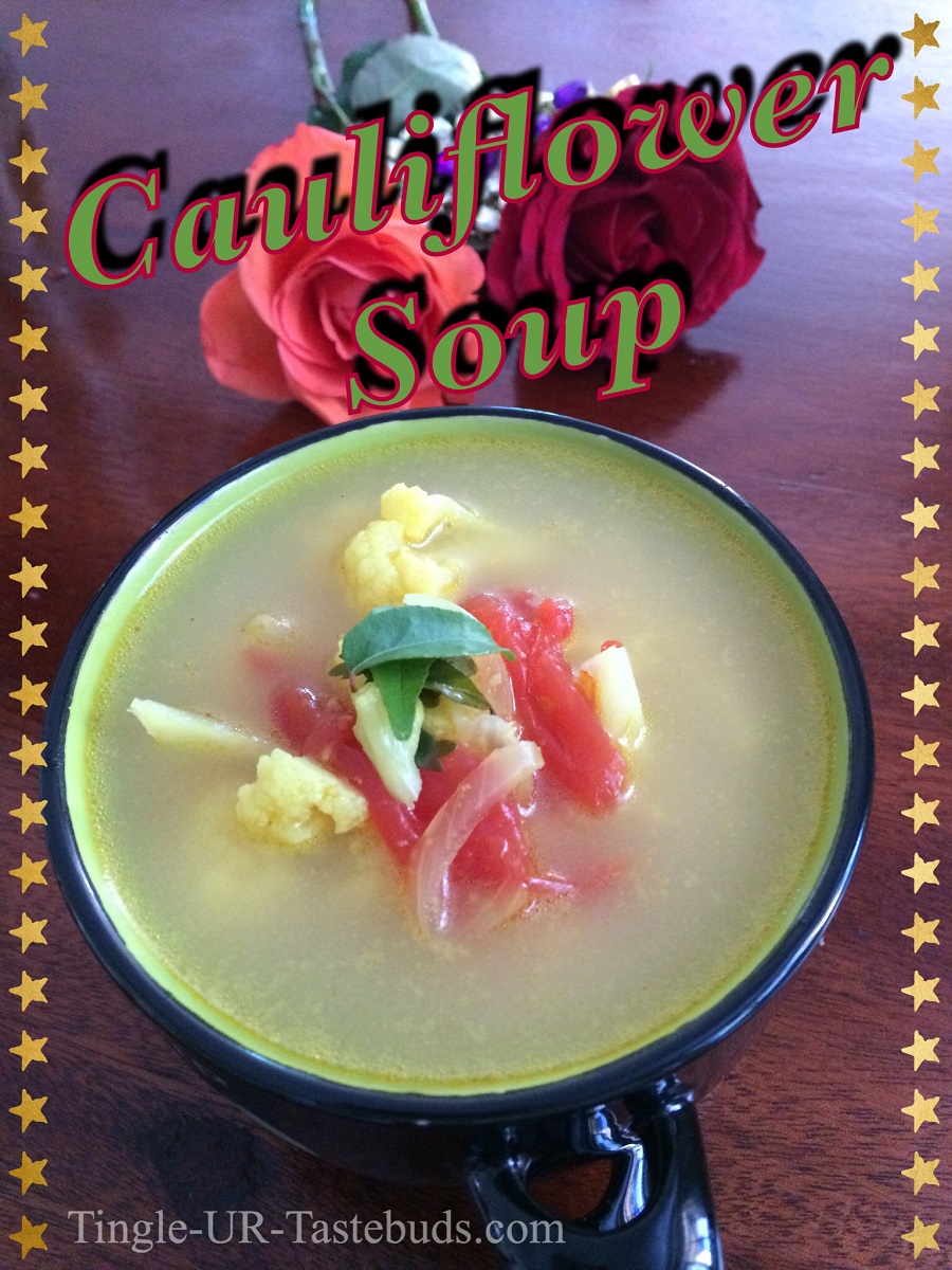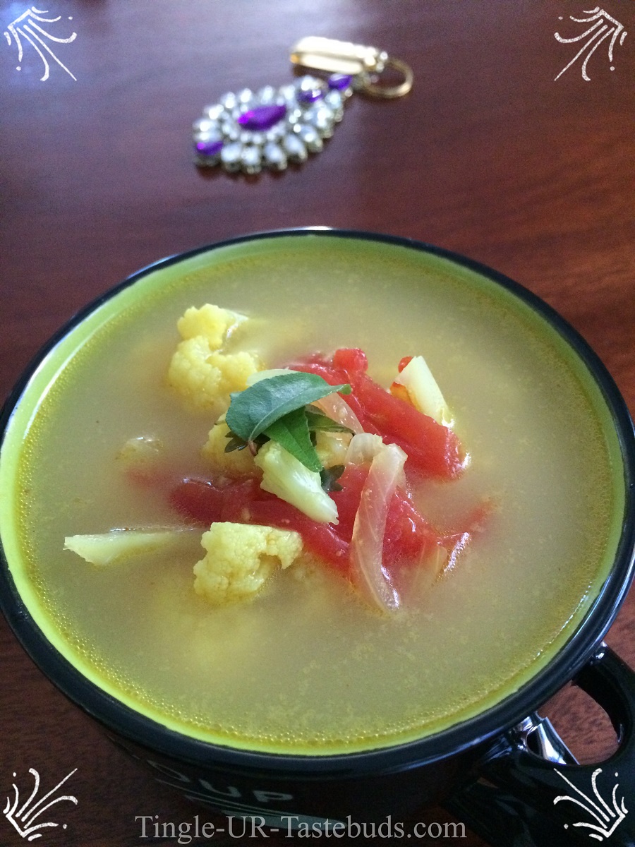 The Cauliflower Soup is ready to be served. It can be had as a soup or it can be added to rice instead of any rasam also. Try and let me know if you liked it.