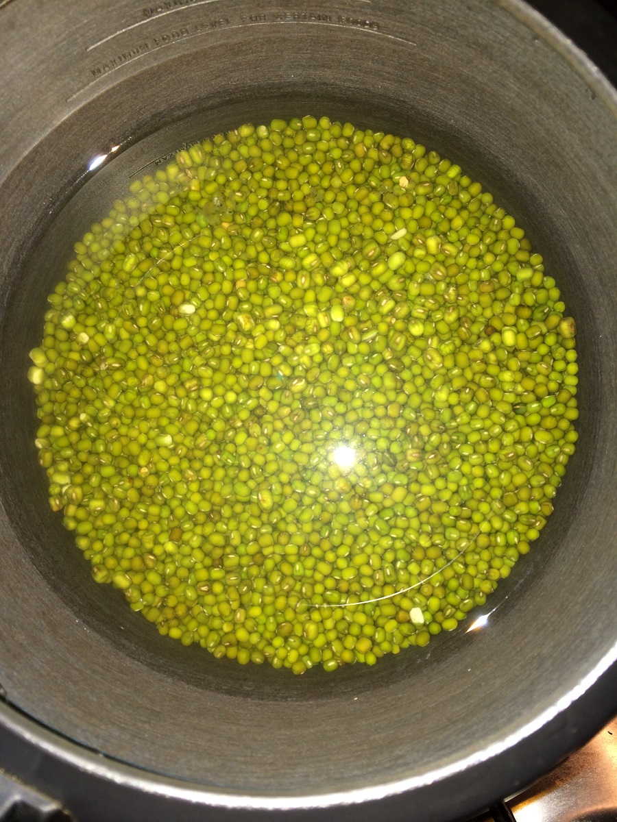 Note: Cooking the green gram in the pressure cooker makes it easier to cook. Add an inch more water above the green gram.