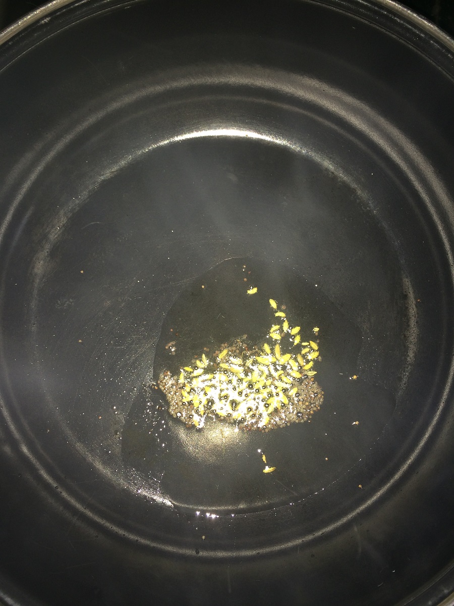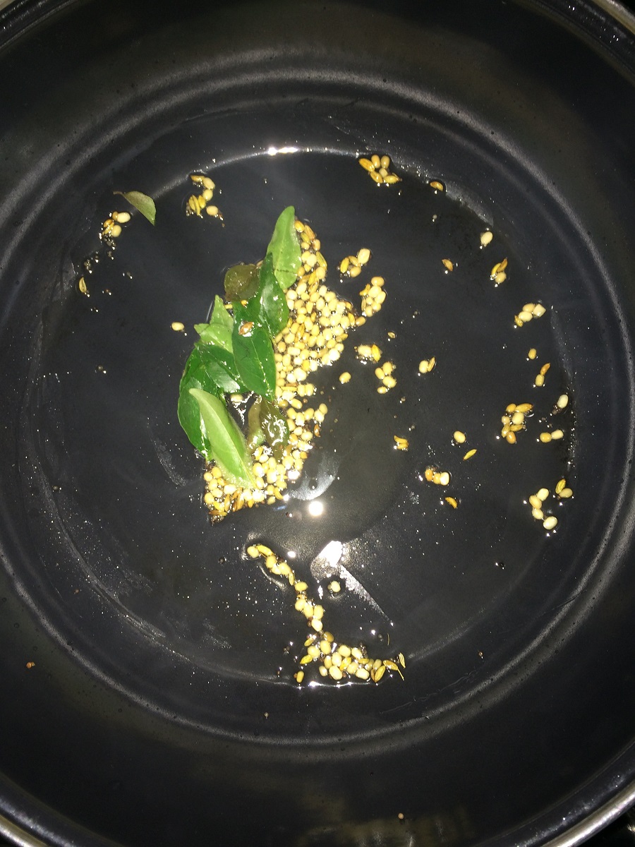 • Take oil in a vessel. Temper mustard, fennel and urad dal.