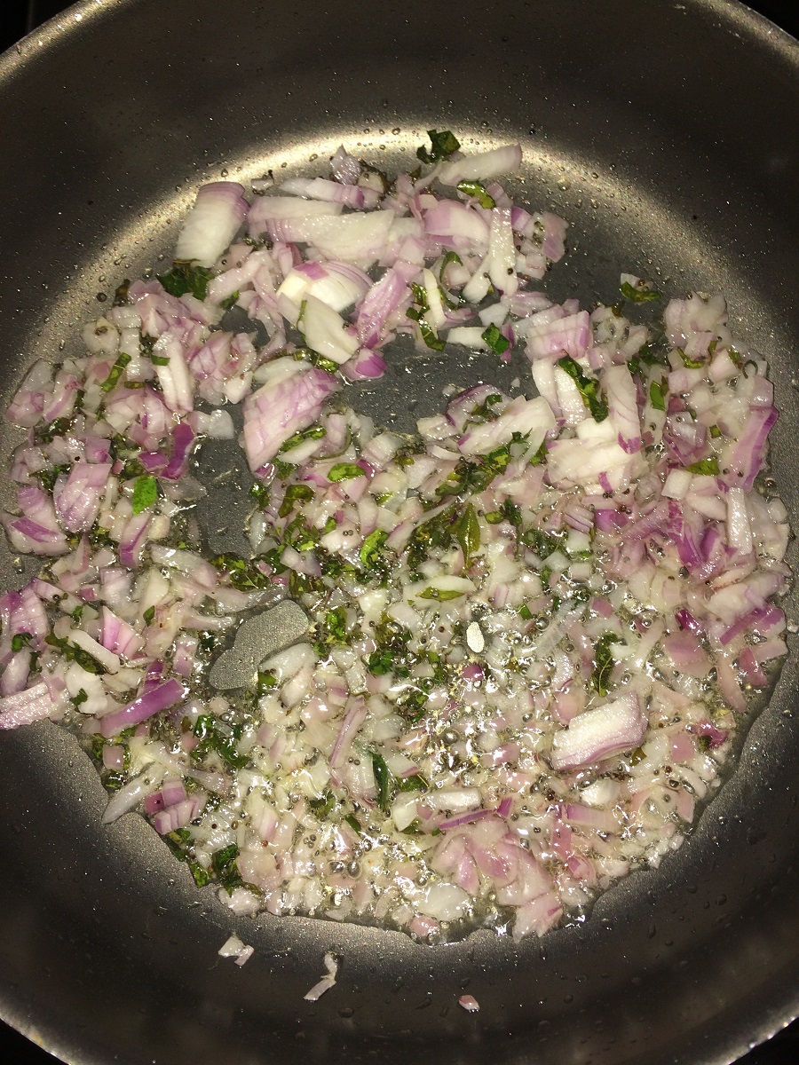 - Now add the chopped onion and curry leaves and cook till the onion become translucent.