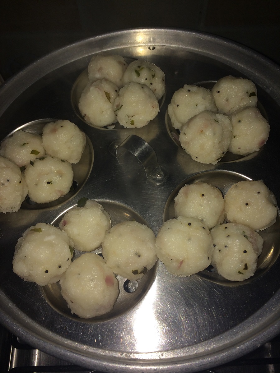 - Now set a steamer on the stove and start to make lime sized balls of the kozhakattai.