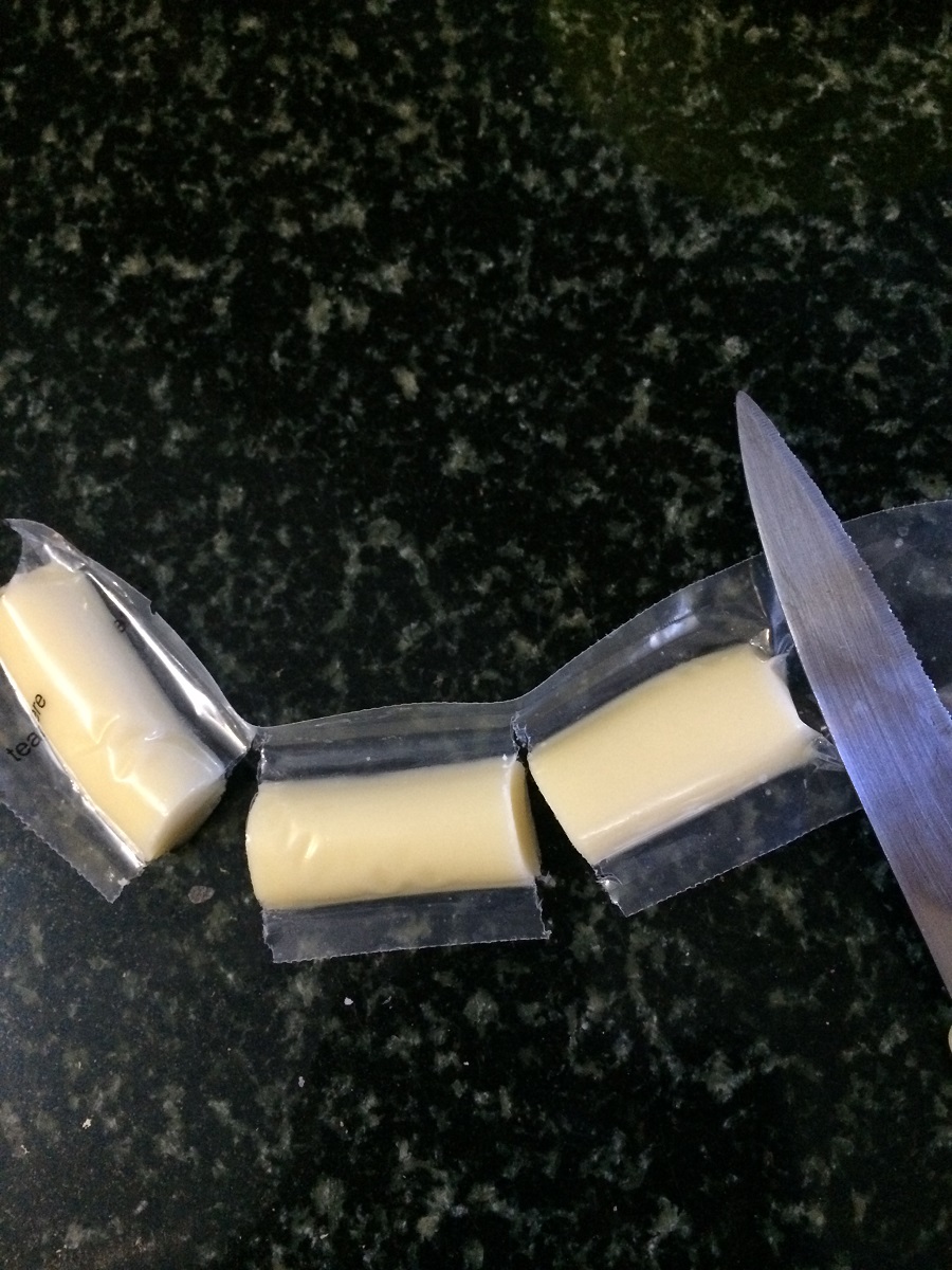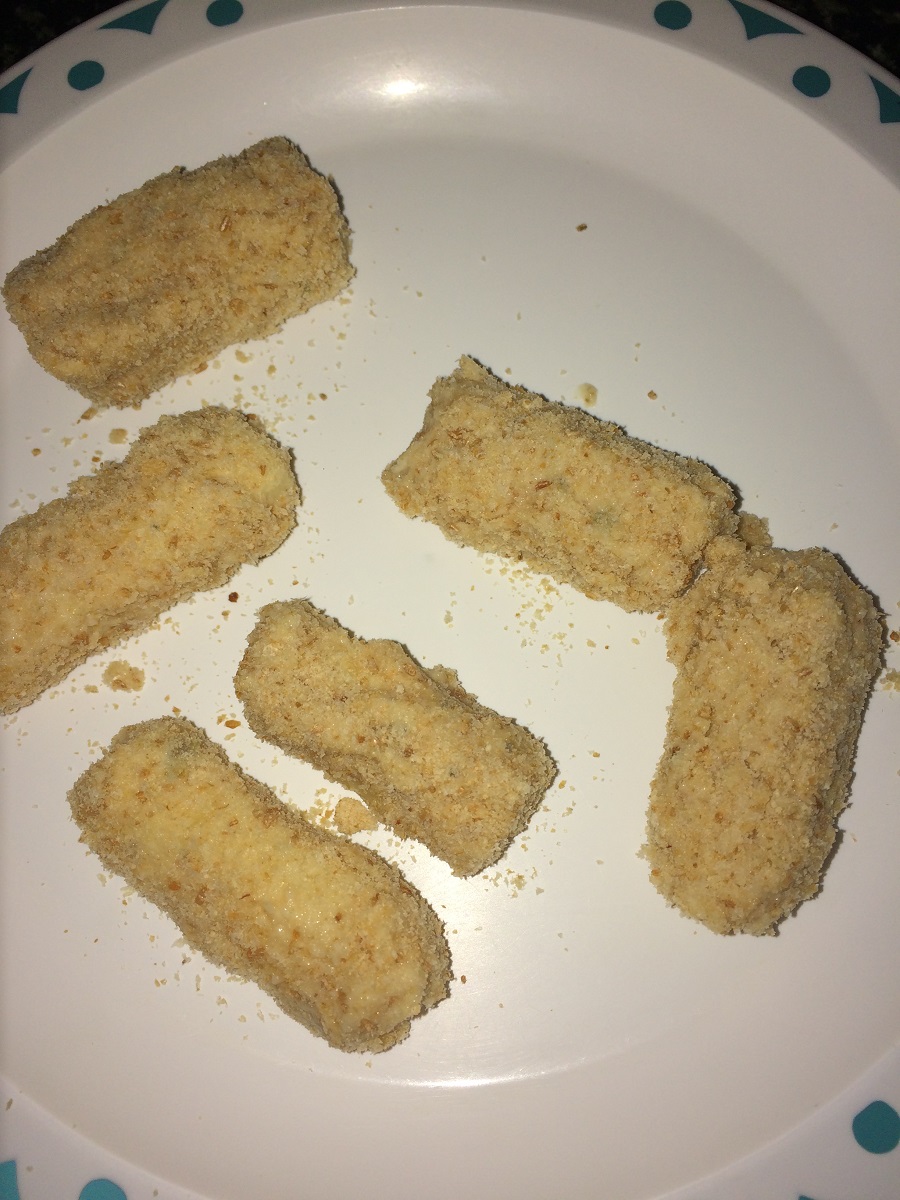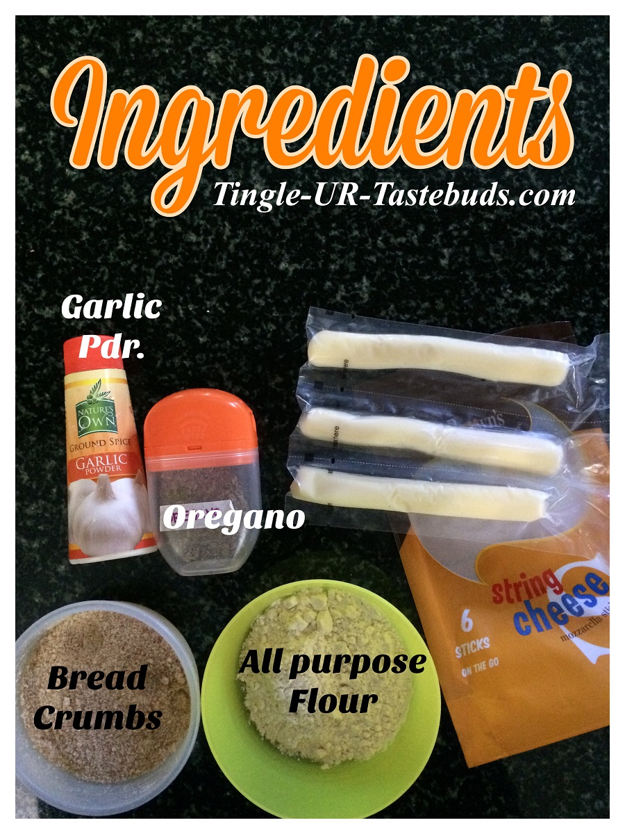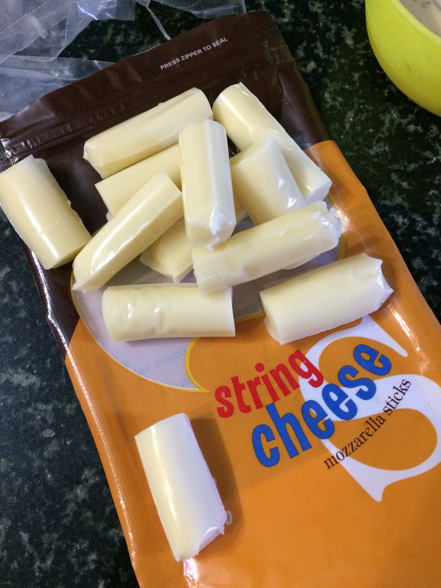 Note : Can use Mozzarella String Cheese or the block mozzarella works well. If using the block then cut them into rectangular fingers.
