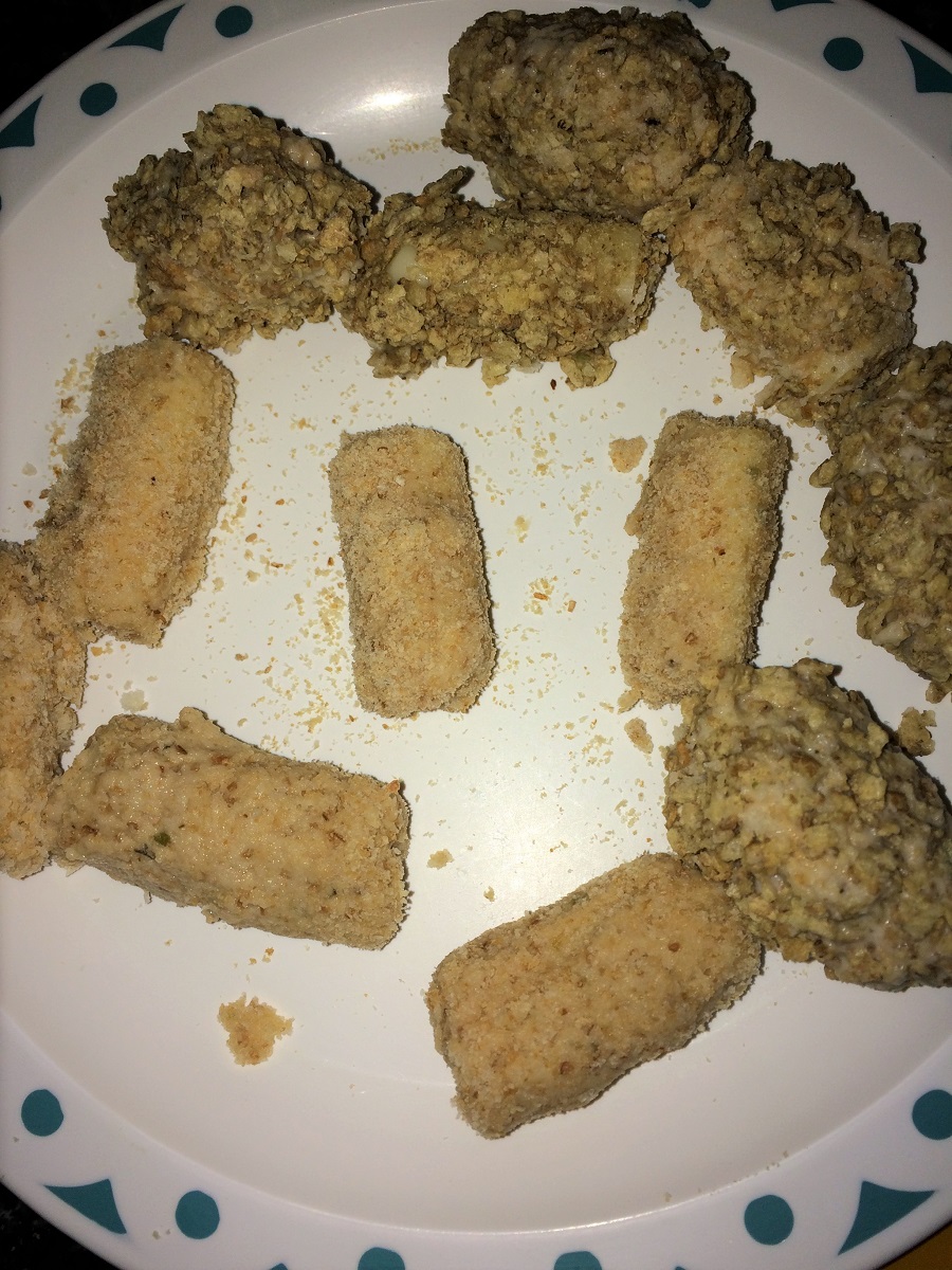 Putting them in the freezer allows it to set and while frying the cheese doesn’t melt too much and ooze out.