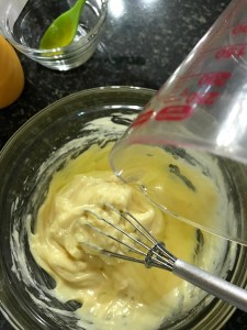 You can whisk in hand or use a small blender, the big blender doesn’t work for this.