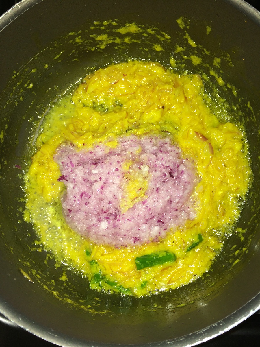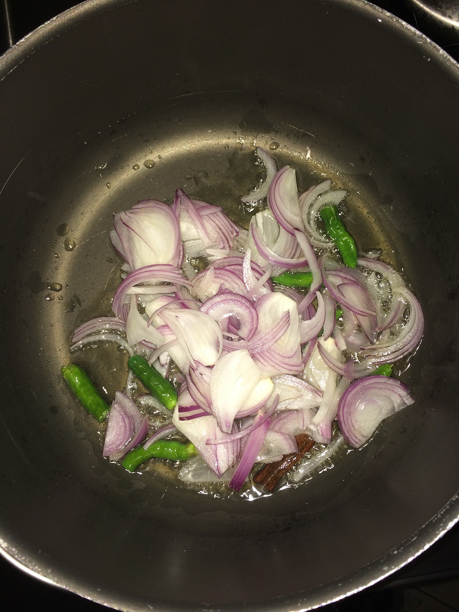To make it in a rice cooker do all the cooking as shown below in a pan until you add water and after it comes to a boil just transfer the contents into the rice cooker and allow it to cook in cook mode and until it comes to keep warm.