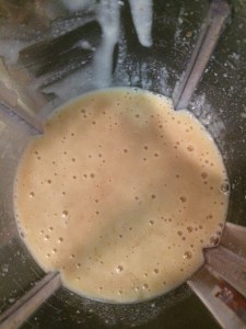 - Now add the soaked Sabudana/Javarusi and required amount of salt to the blended mixture. Blend everything to a smooth paste.