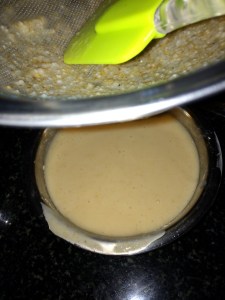 - Arrange a sieve in a vessel and transfer the ground mixture and strain everything.