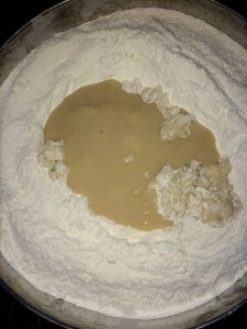 - Add the strained mixture to the flour mixture. Make it into a pliable dough by adding water if needed. Check salt in the dough. Add if needed.